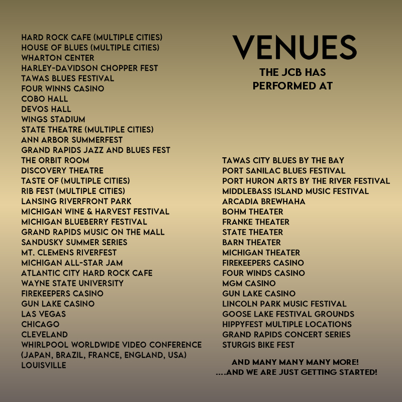 From large arenas to small theaters, we can provide you with the music that gets people moving and out of their seats. We guarantee a great time for all!!!